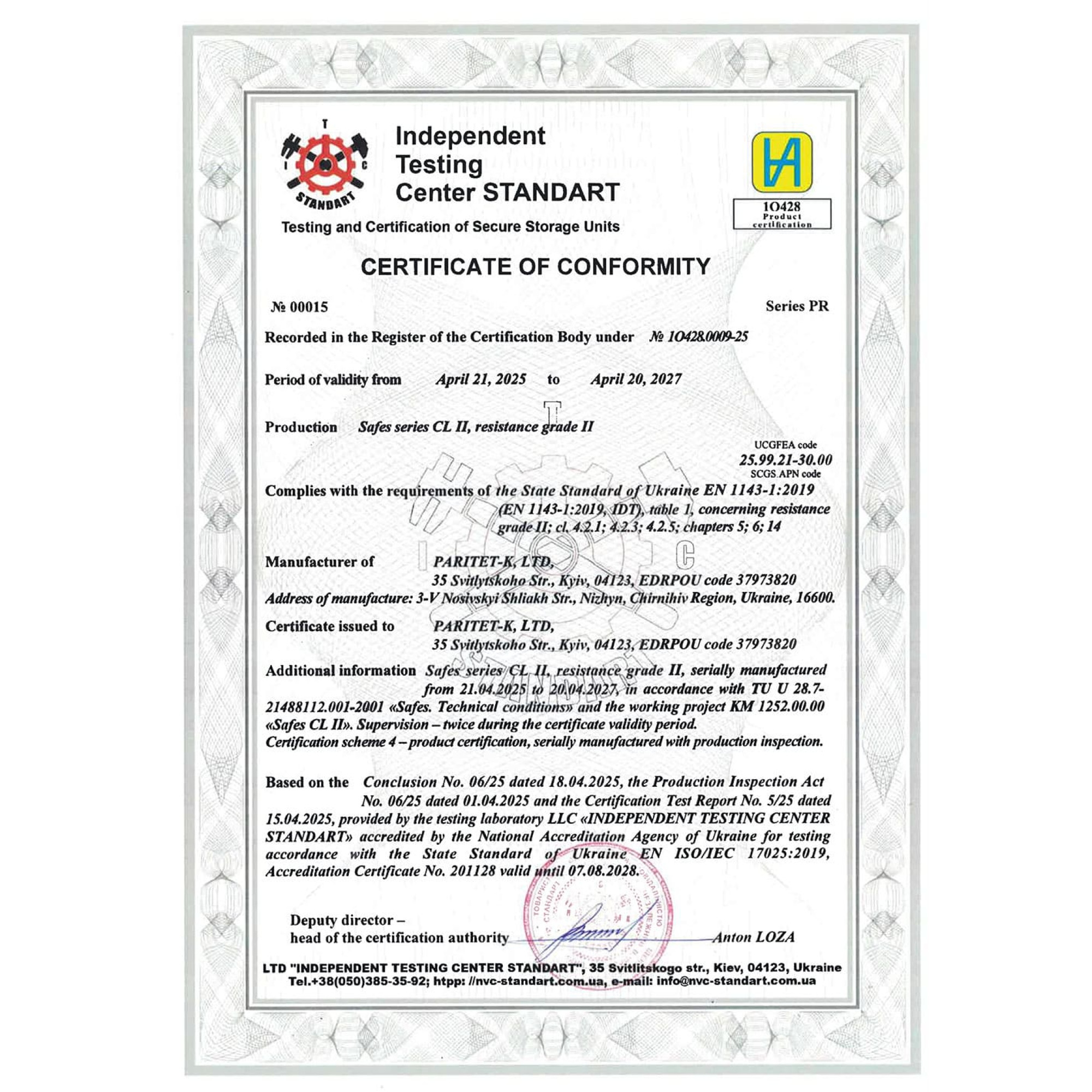 Cassaforte costruita in conformità alla Classe II di resistenza all’effrazione secondo la norma EN 1143-1 (DSTU).
